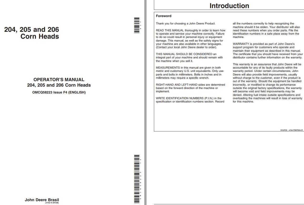 John Deere 204 205 206 Operator's Manual OMCQ58223