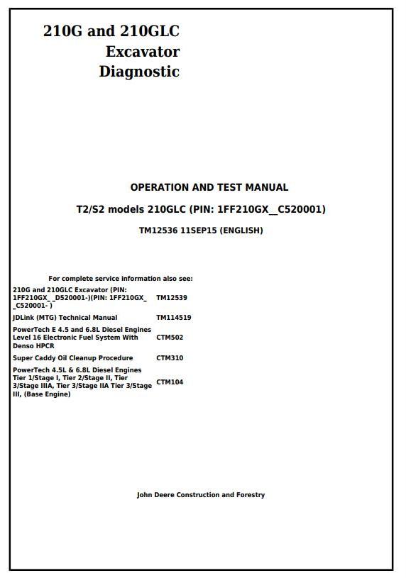 John Deere 210G 210GLC Excavator Diagnostic Operation Test Manual TM12536