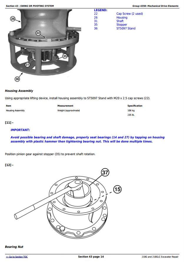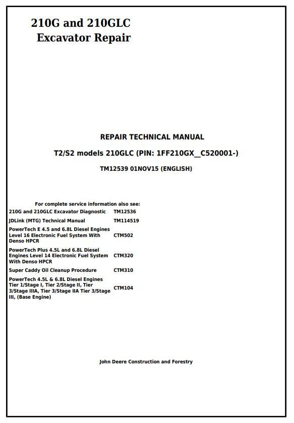 John Deere 210G 210GLC Excavator Repair Technical Manual TM12539