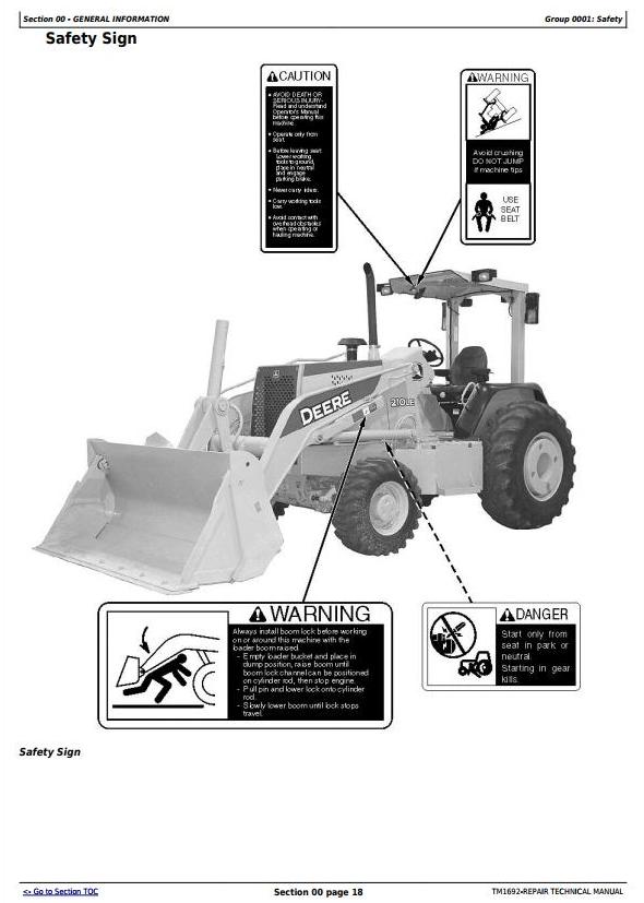 John Deere 210LE Landscape Loader Repair Technical Manual TM1692