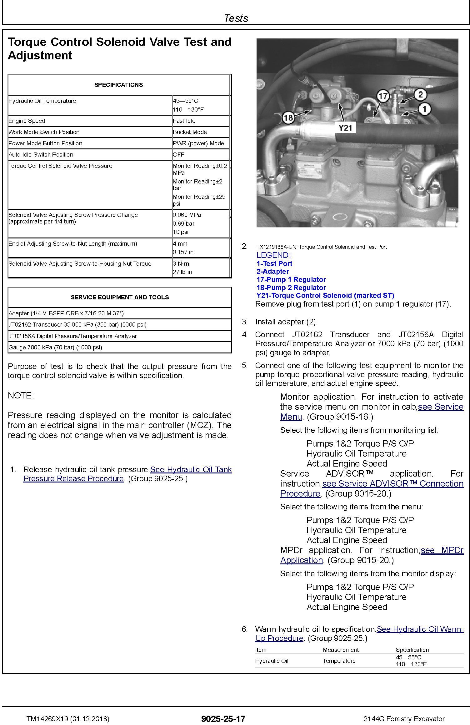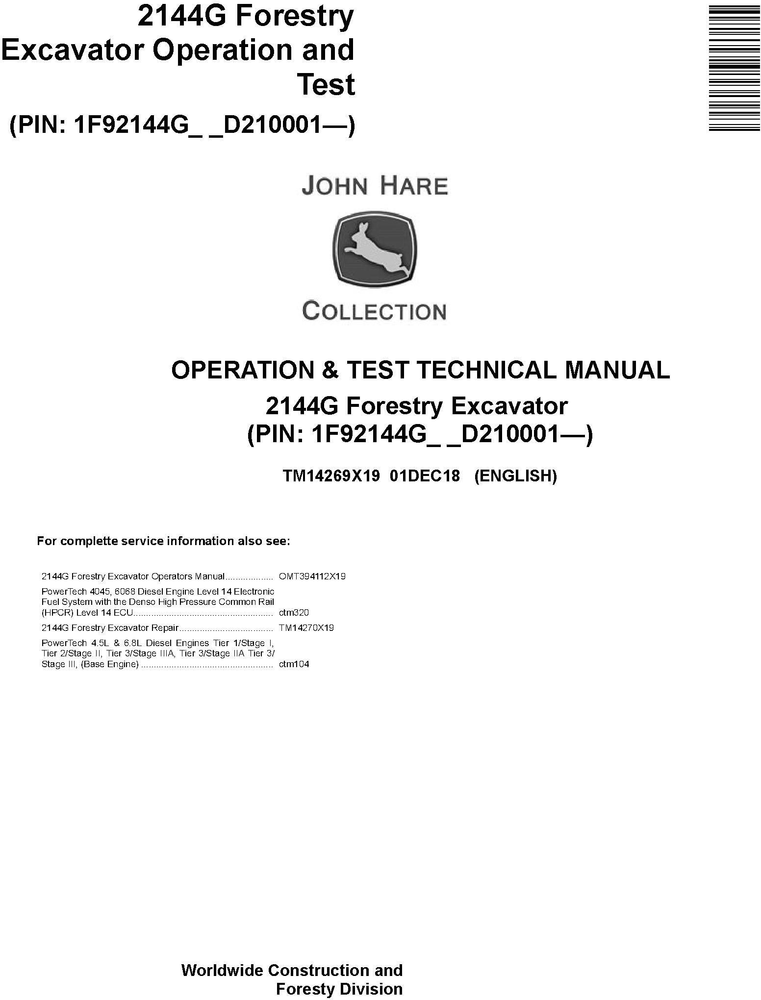 John Deere 2144G Forestry Excavator Operation Test Technical Manual TM14269X19