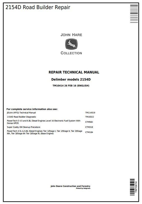 John Deere 2154D Road Builder Repair Technical Manual TM10414