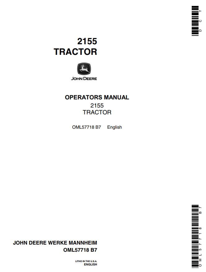 John Deere 2155 Operators Manual OML57718