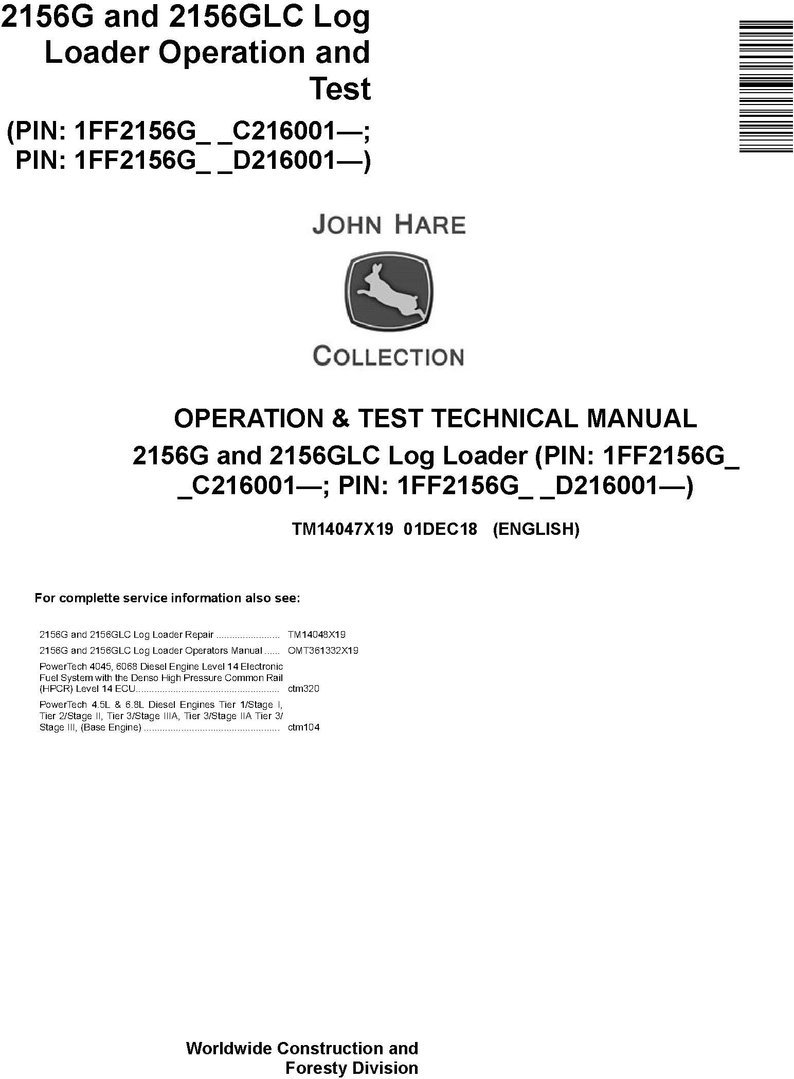 John Deere 2156G 2156GLC Log Loader Operation Test Technical Manual TM14047X19