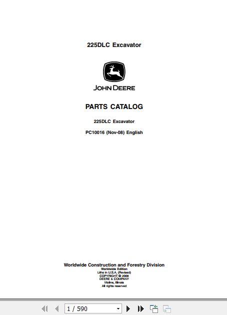 John Deere 225DLC Parts Catalog PC10016