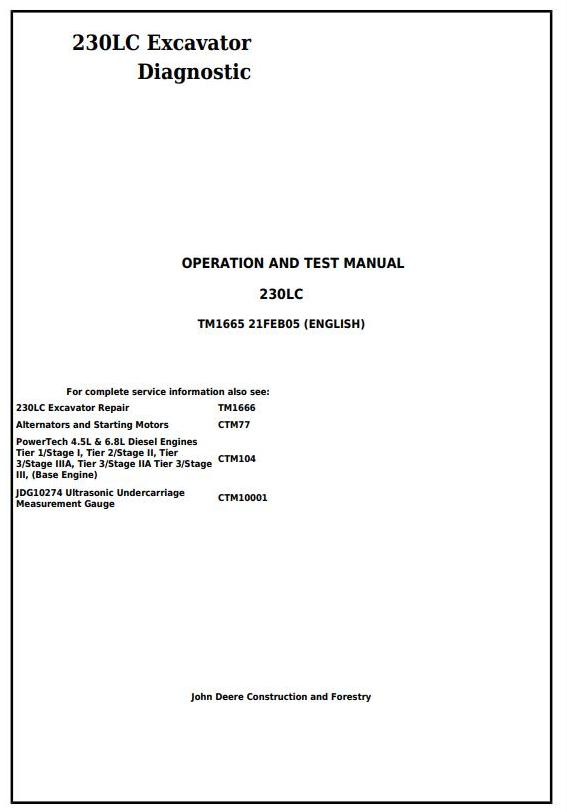 John Deere 230LC Excavator Diagnostic Operation Test Manual TM1665