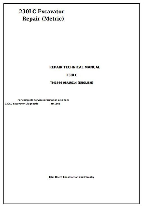 John Deere 230LC Repair Technical Manual TM1666