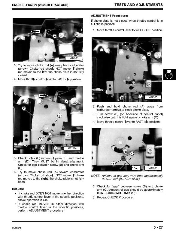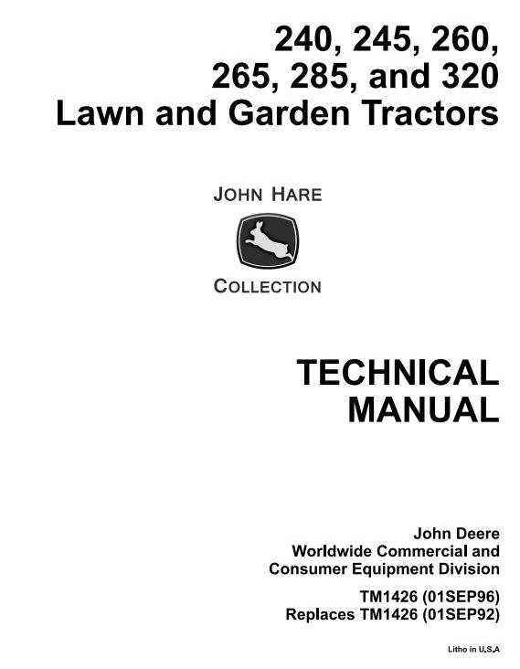 John Deere 240 245 260 265 285 320 Lawn Garden Tractor Technical Manual TM1426