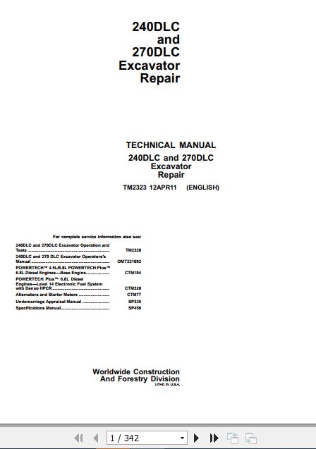 John Deere 240DLC 270DLC Technical Repair Manual TM2323