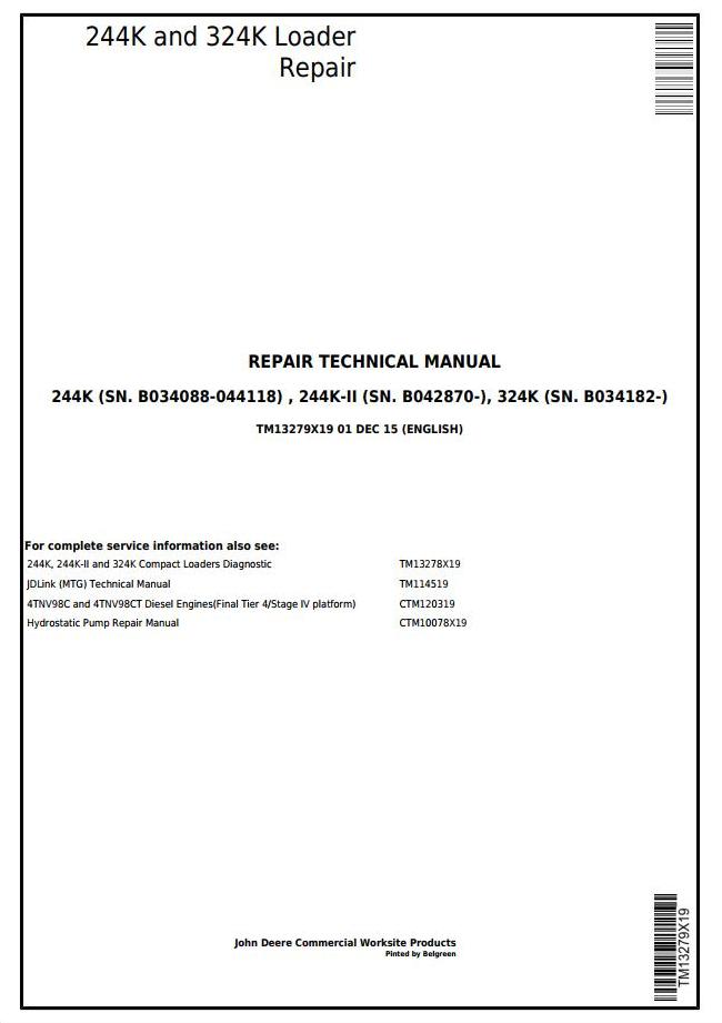 John Deere 244K 224K-II 324K Loader Repair Technical Manual TM13279X19