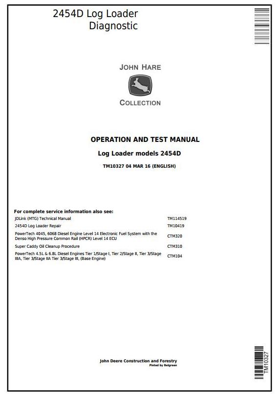 John Deere 2454D Log Loader Diagnostic Operation Test Manual TM10327