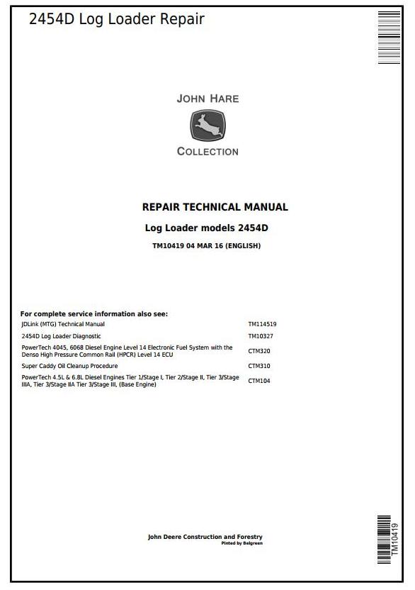 John Deere 2454D Log Loader Repair Technical Manual TM10419