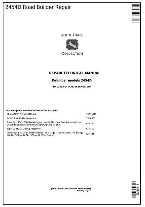 John Deere 2454D Road Builder Delimber Repair Technical Manual TM10418