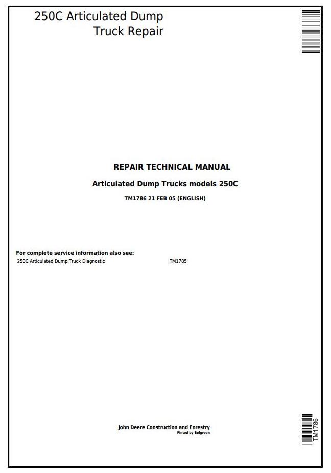 John Deere 250C Articulated Dump Truck Repair Technical Manual TM1786