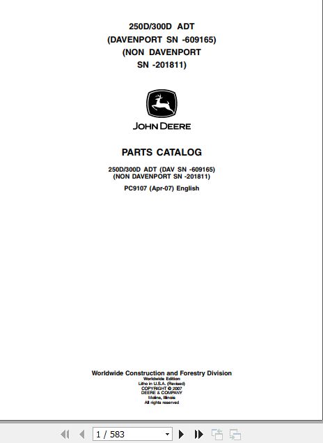John Deere 250D 300D 250ADT 300ADT Parts Catalog PC9107