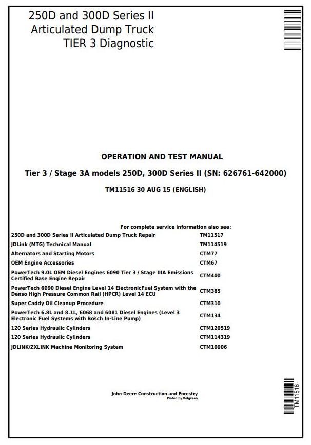 John Deere 250D 300D Series II Articulated Dump Truck Diagnostic Operation Test Manual TM11516