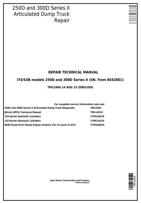 John Deere 250D 300D Series II Articulated Dump Truck Repair Technical Manual TM12404