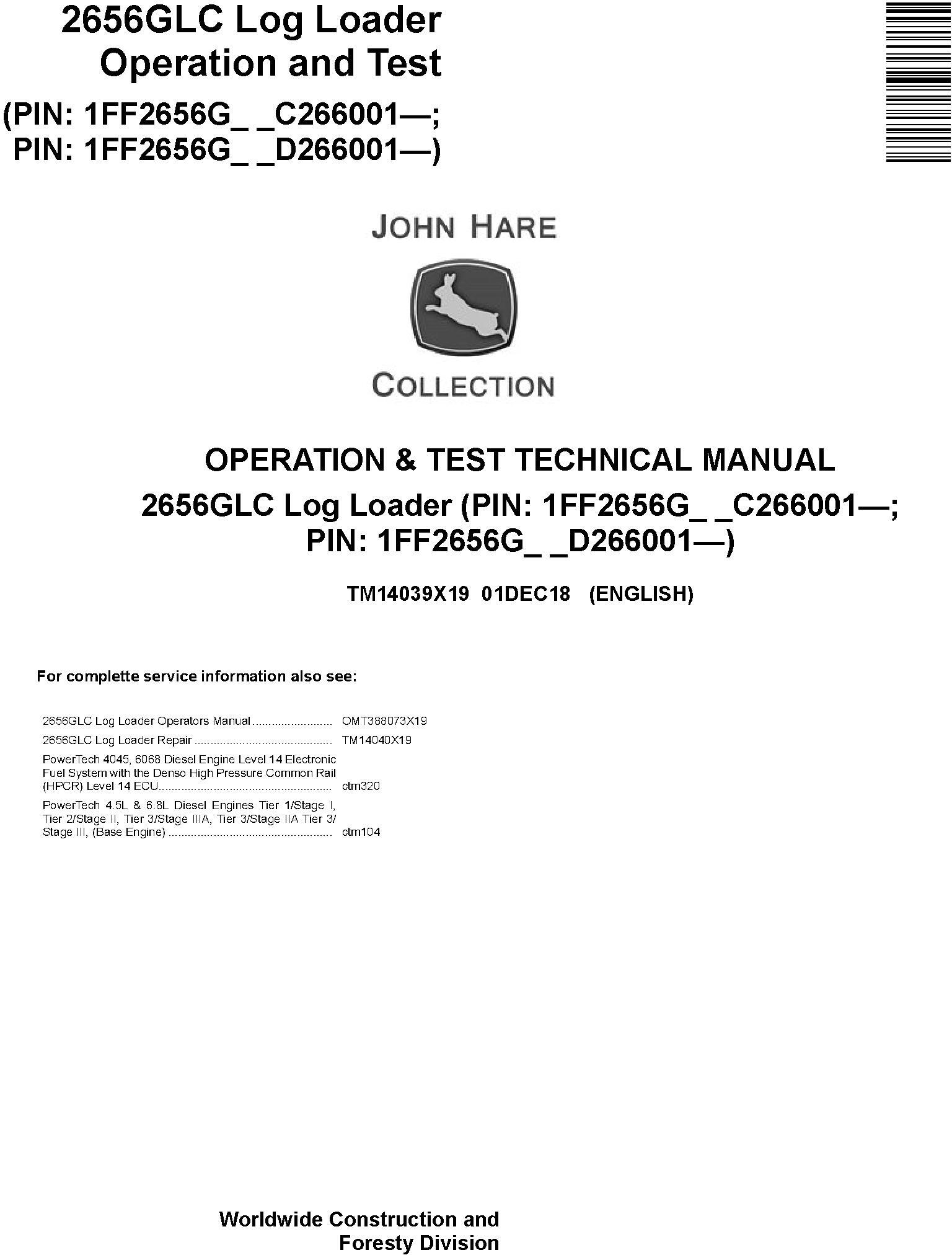 John Deere 2656GLC Log Loader Operation Test Technical Manual TM14039X19