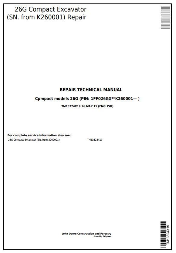 John Deere 26G Compact Excavator Repair Technical Manual TM13324X19