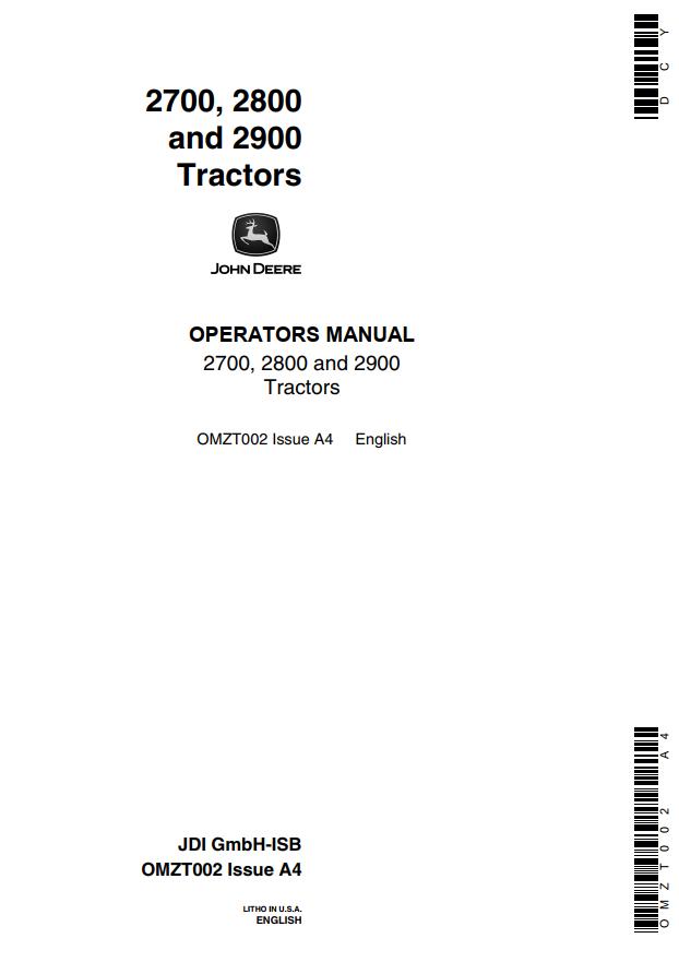 John Deere 2700 2800 2900 Operators Manual OMZT002