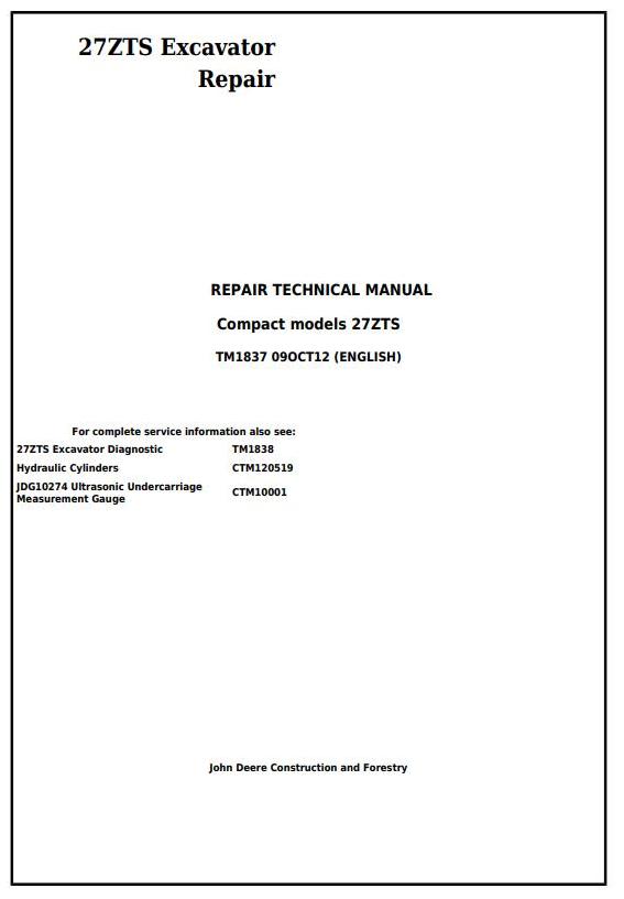 The Bookmarks of John Deere 27ZTS Repair Technical Manual TM1837: