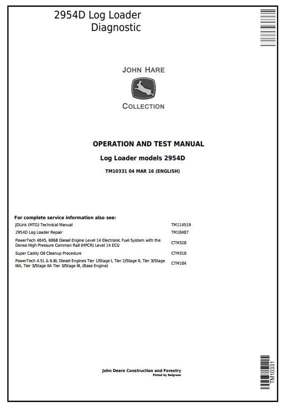 John Deere 2954D Log Loader Diagnostic Operation Test Manual TM10331