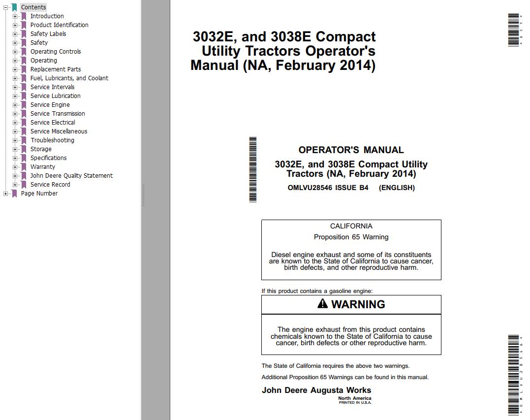 John Deere 3032E 3038E Operator's Manual OMLVU28546