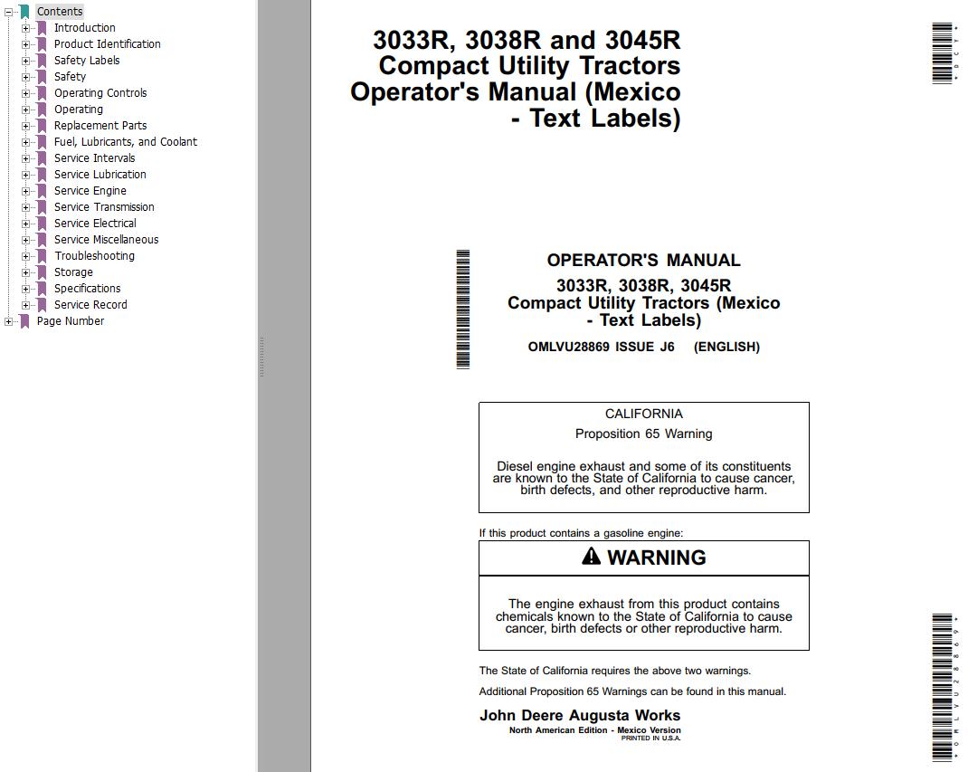 John Deere 3033R 3038R 3045R Operator's Manual OMLVU28869 (180 Pages)