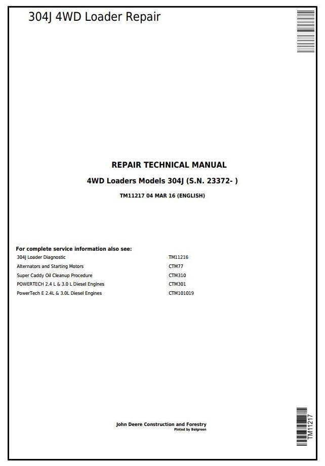John Deere 304J 4WD Loader Repair Technical Manual TM11217