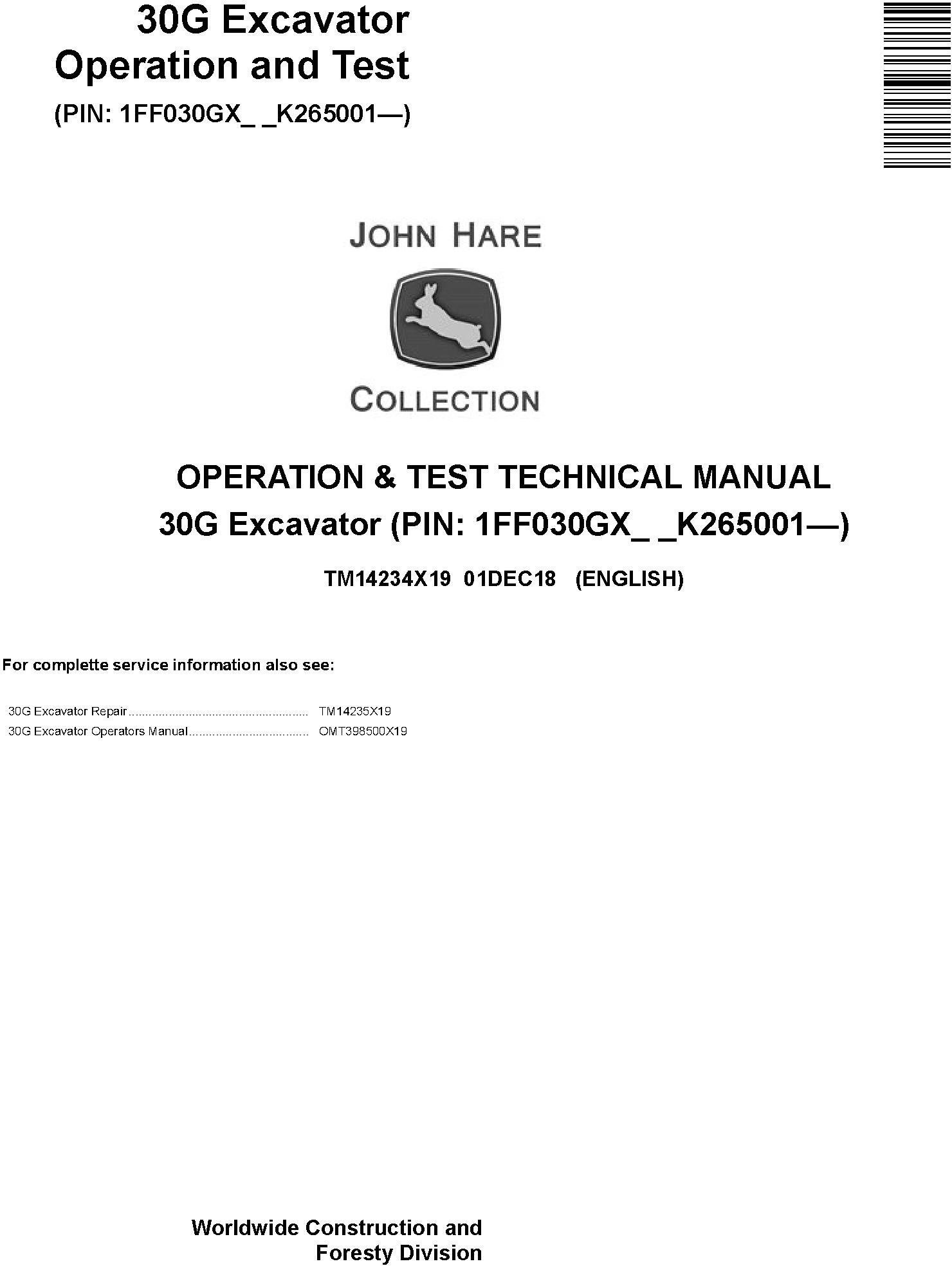 John Deere 30G Excavator Operation Test Technical Manual TM14234X19