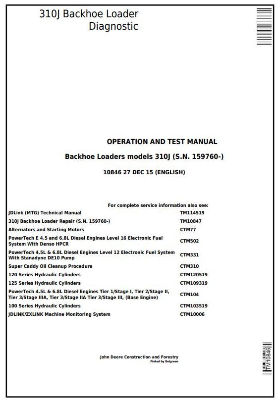 John Deere 310J Backhoe Loader Diagnostic Operation Test Manual TM10846