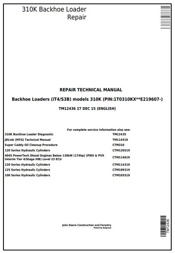 John Deere 310K Backhoe Loader Repair Technical Manual TM12436