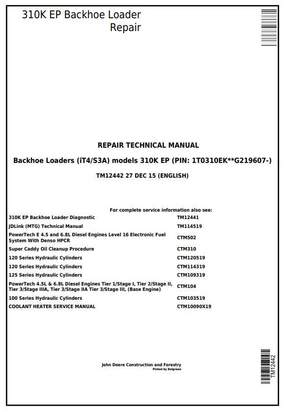 John Deere 310K EP Backhoe Loader Repair Technical Manual TM12442