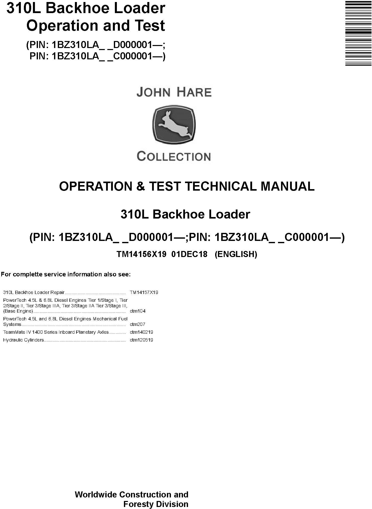 John Deere 310L Backhoe Loader Operation Test Technical Manual TM14156X19