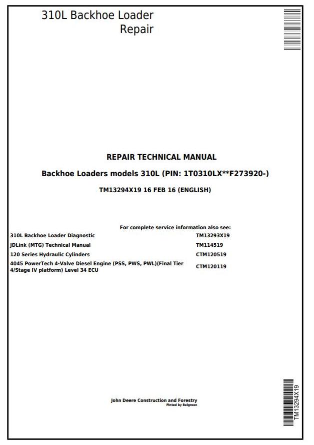 John Deere 310L Backhoe Loader Repair Technical Manual TM13294X19
