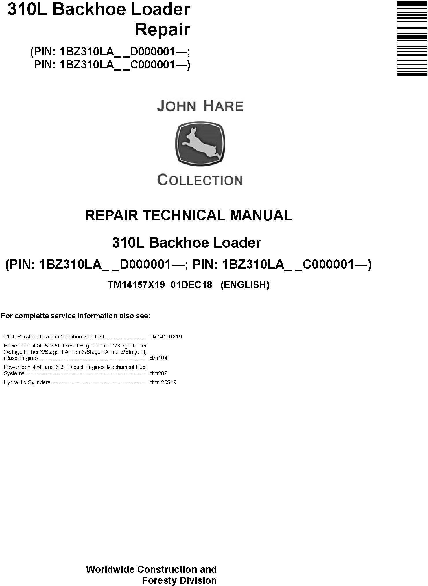 John Deere 310L Backhoe Loader Repair Technical Manual TM14157X19