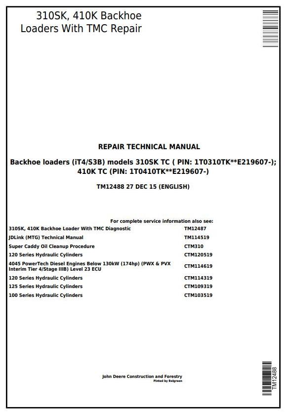 John Deere 310SK 410K TC Backhoe Loader Repair Technical Manual TM12488