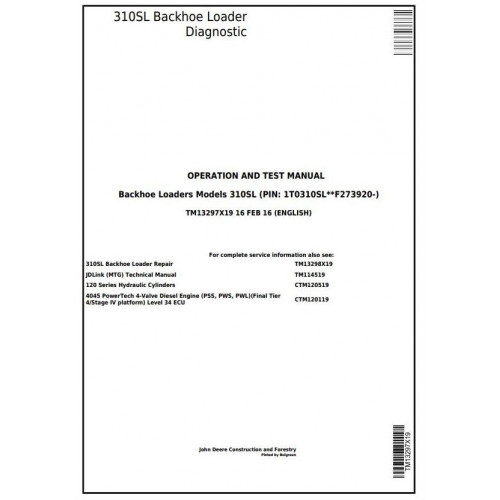 John Deere 310SL Backhoe Loader Operation Test Manual TM13297X19