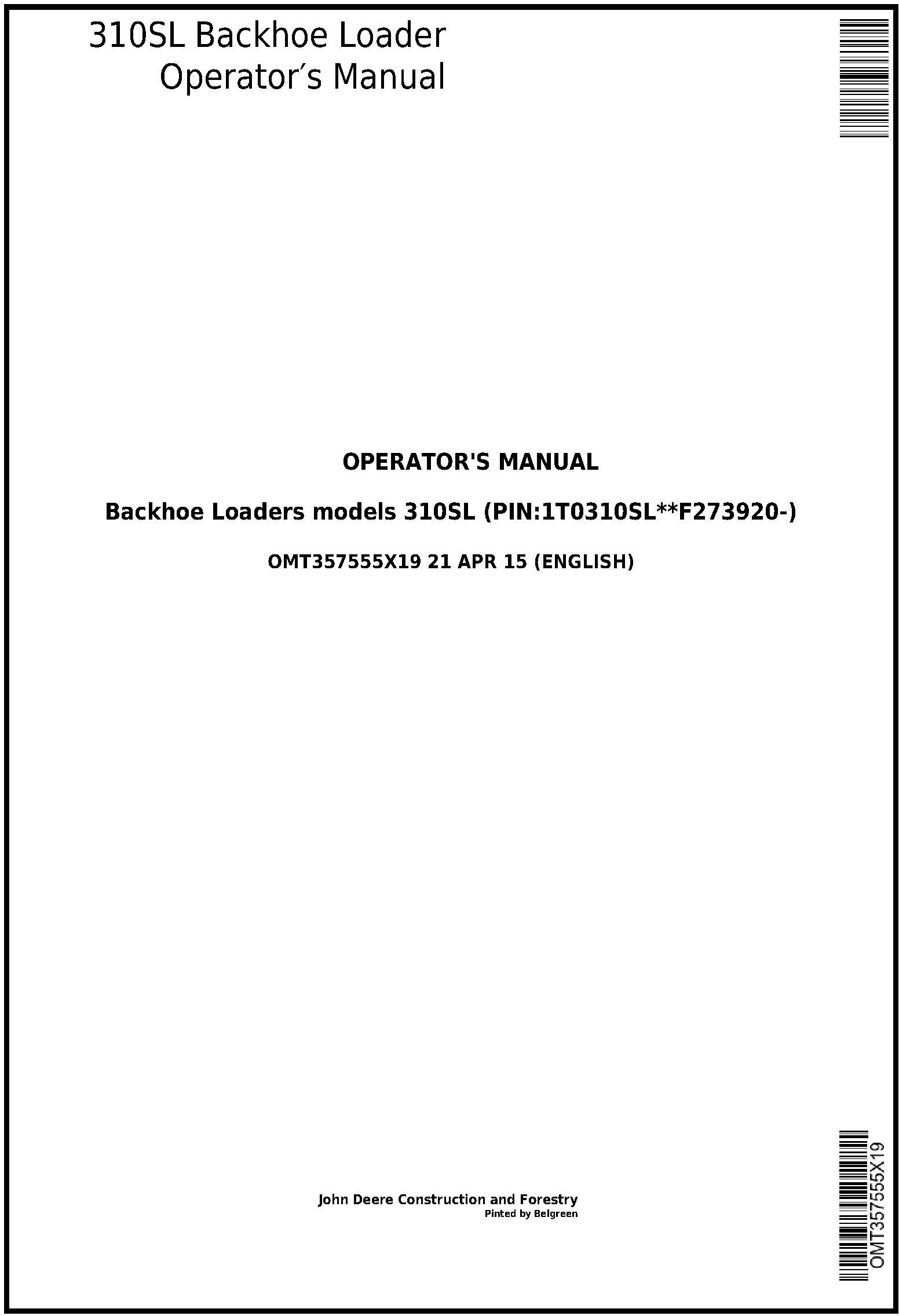 John Deere 310SL Backhoe Loader Operator Manual OMT357555X19
