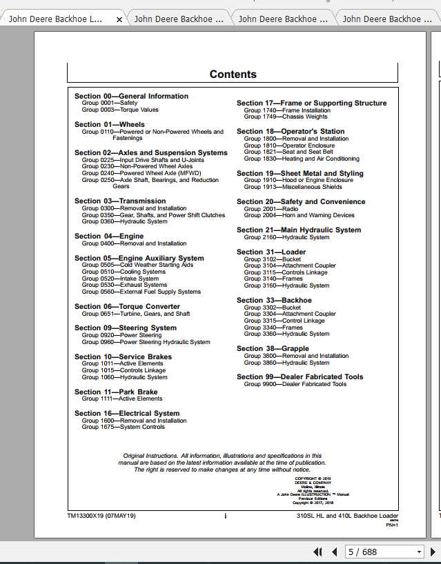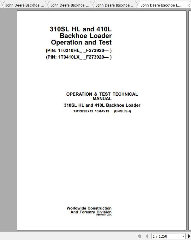 John Deere Backhoe Loader 310SL HL, 410L Operation & Test Technical Manual_TM13299X19(2019)