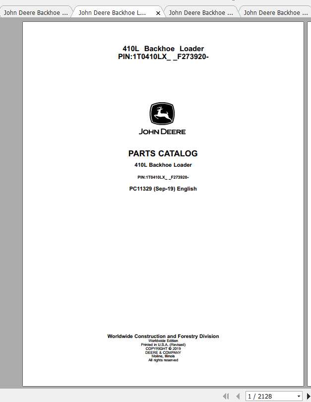 John Deere Backhoe Loader 410L Parts Catalog_PC11329(2019)