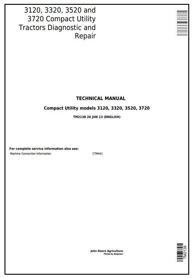John Deere 3120 3320 3520 3720 Compact Utility Tractor Diagnostic Repair Technical Manual TM2138
