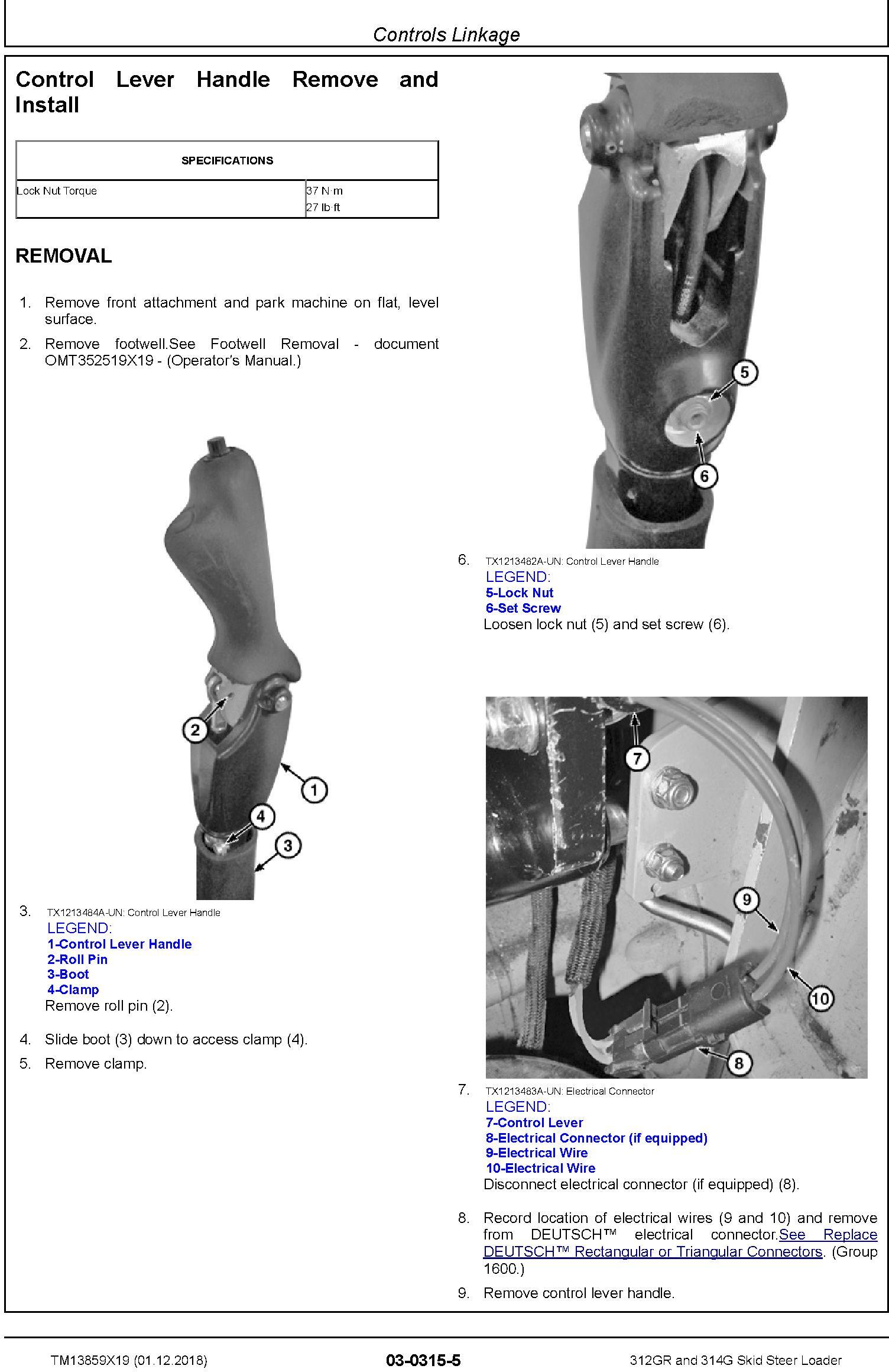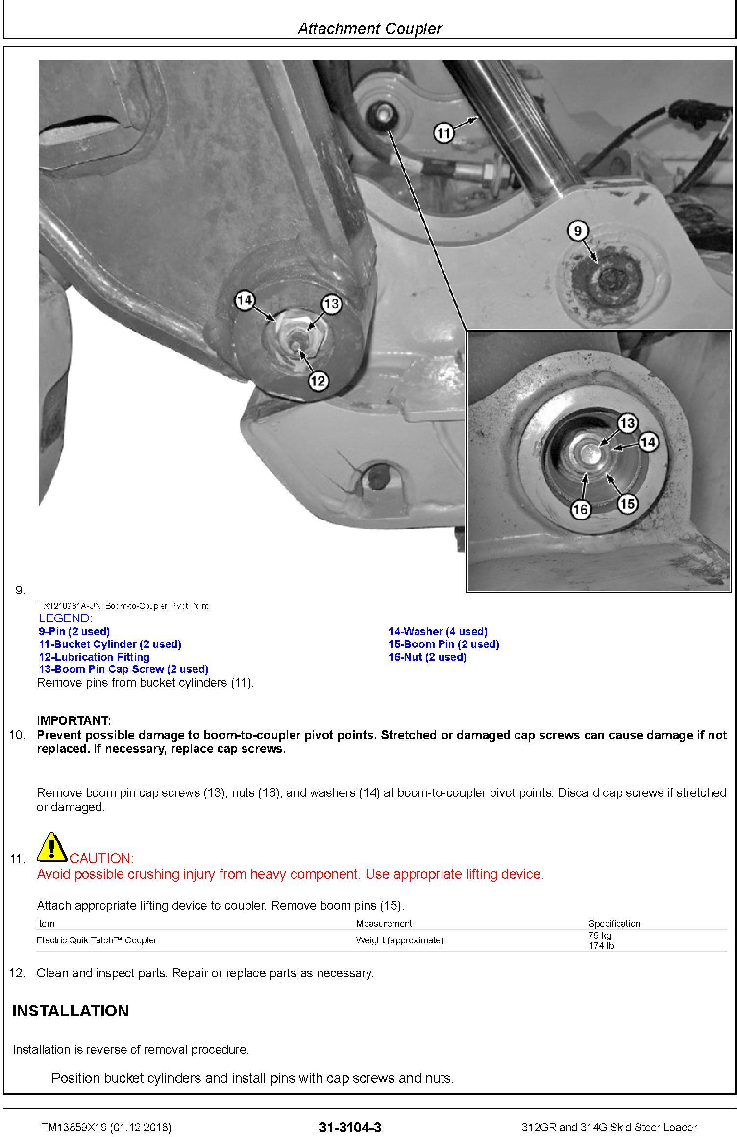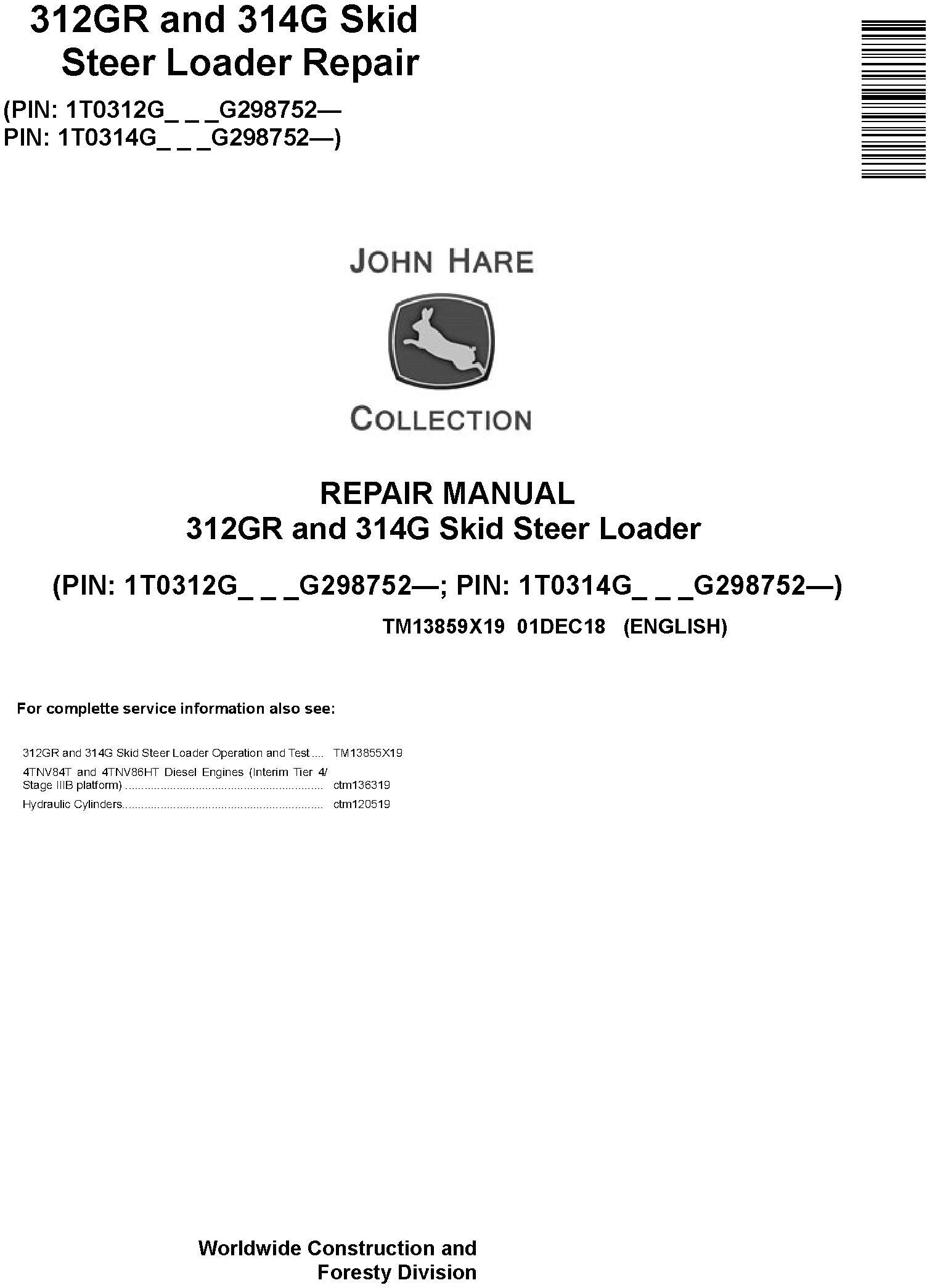 John Deere 312GR 314G Skid Steer Loader Repair Manual TM13859X19