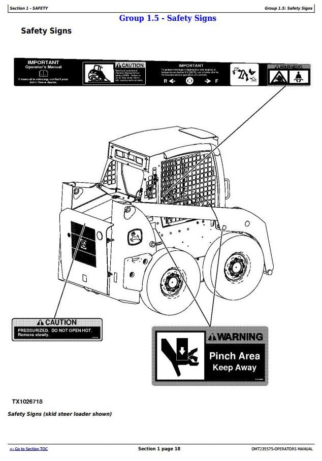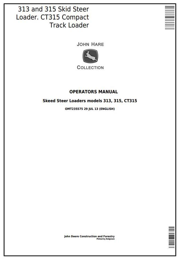 John Deere 313 315 CT315 Skid Steer Loader Operator Manual OMT235575