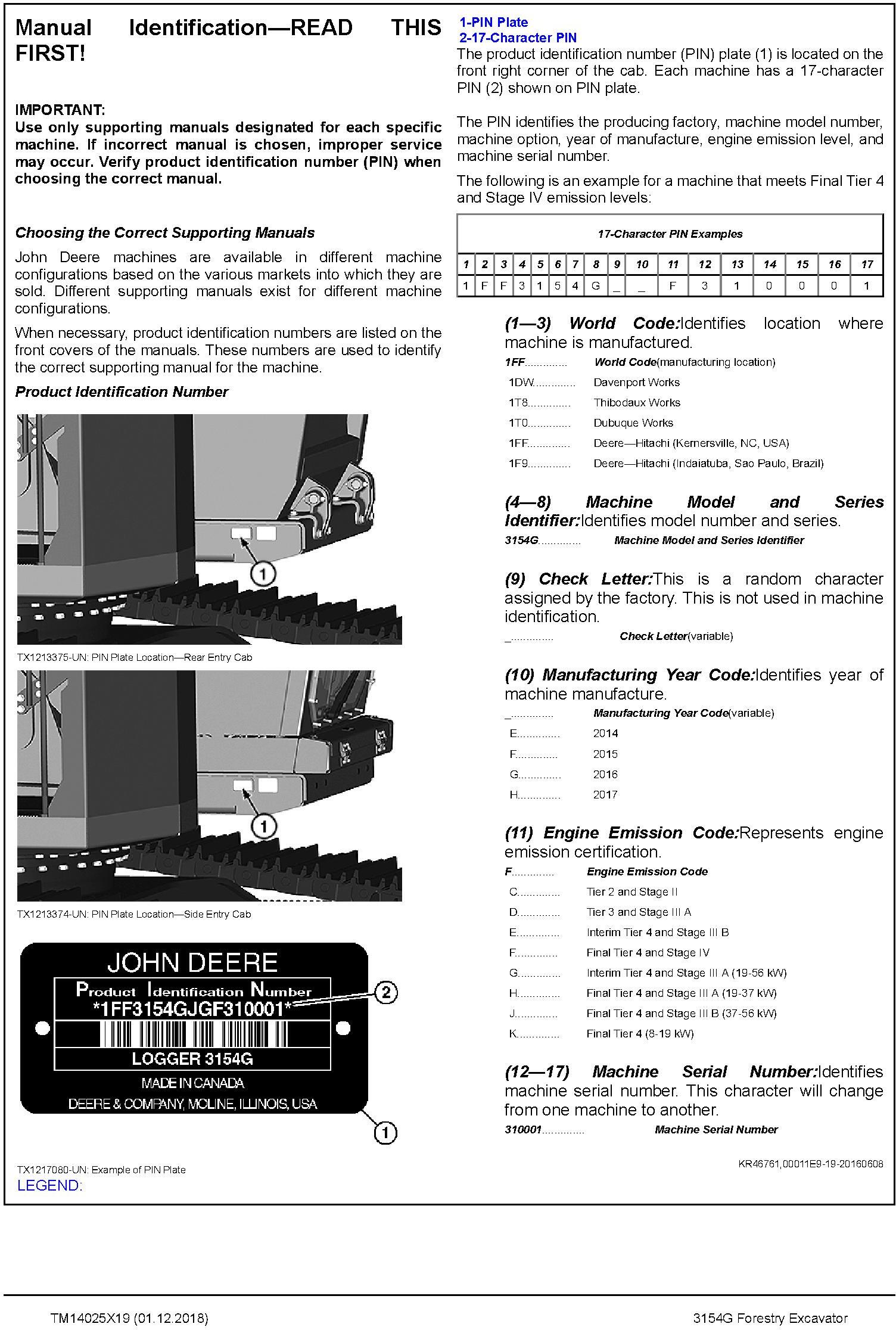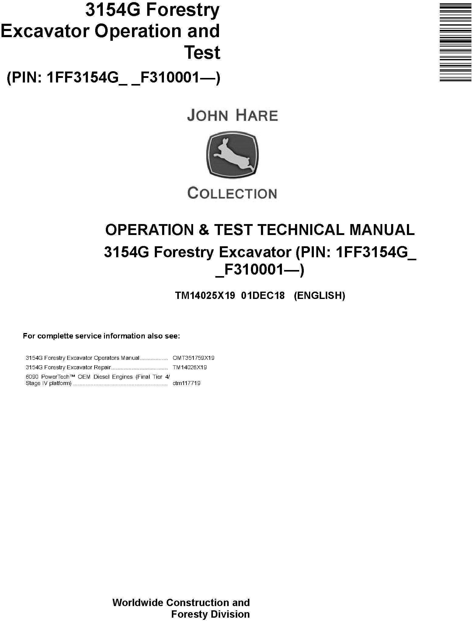 John Deere 3154G Forestry Excavator Operation Test Technical Manual TM14025X19