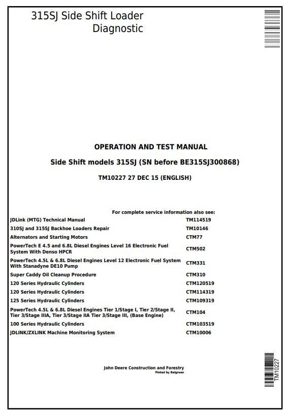 John Deere 315SJ Side Shift Loader Diagnostic Operation Test Manual TM10227