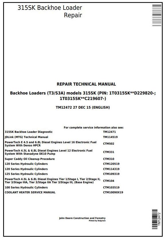 John Deere 315SK Backhoe Loader Repair Technical Manual TM12472