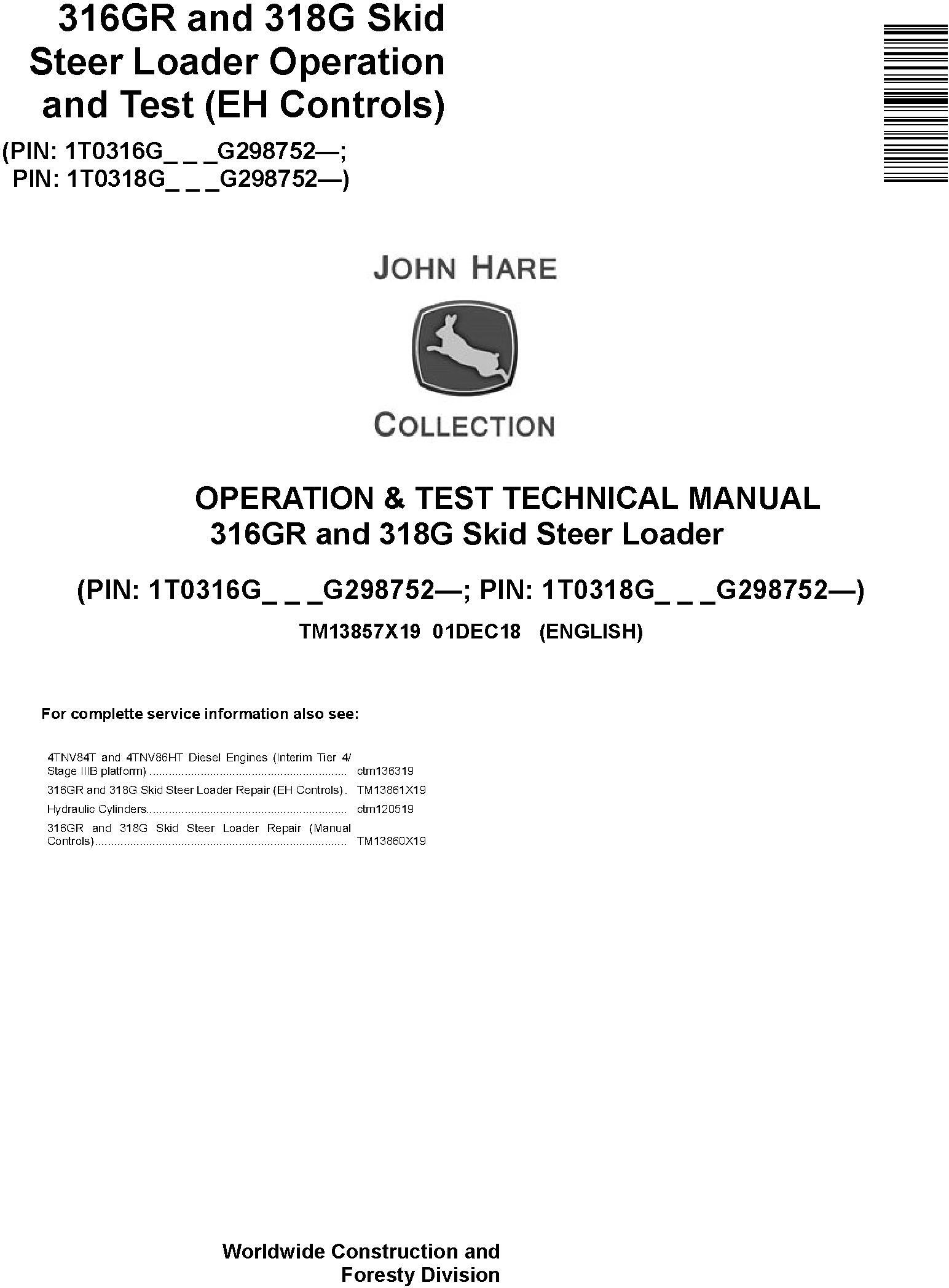 John Deere 316GR 318G Skid Steer Loader Operation Test Technical Manual TM13857X19