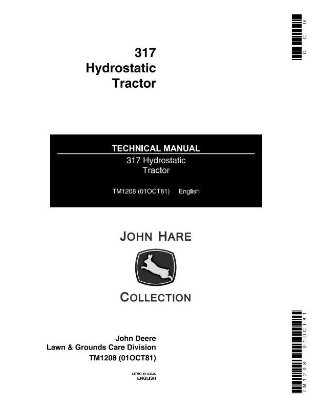 John Deere 317 Hydrostatic Tractor Technical Manual TM1208