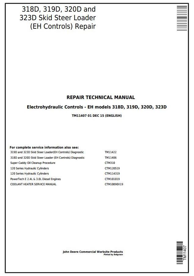 John Deere 318D 319D 320D 323D Skid Steer Loader Repair Technical Manual TM11407